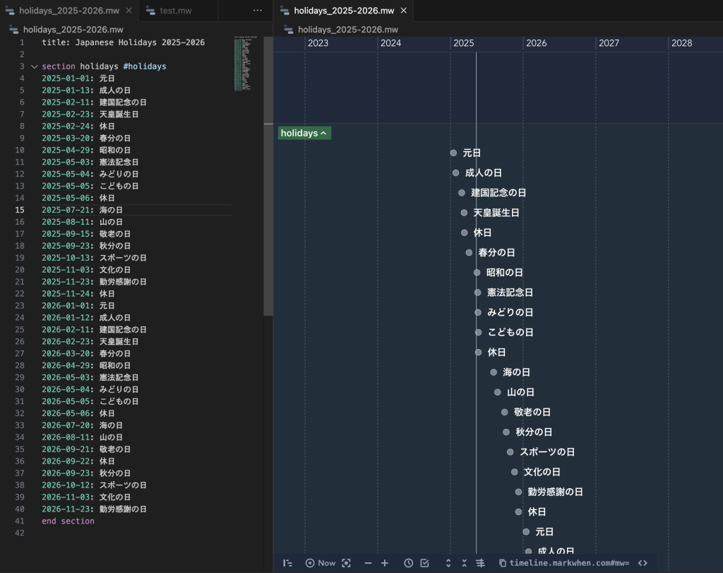 内容は以下のようなMarkwhen形式の祝日リストです。