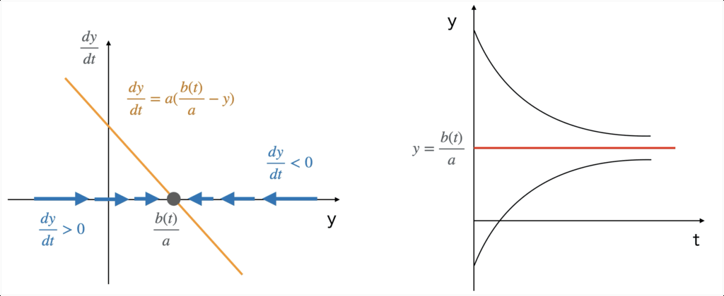 $$\frac{dy}{dt} = a(\frac{b(t)}{a} – y) \tag{2} $$